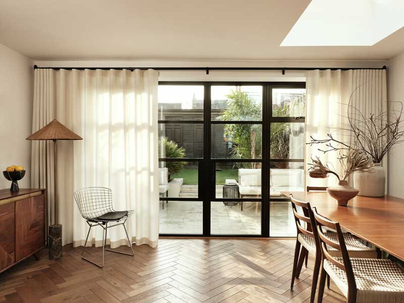 - Decorative curtain pole designed to be a visible feature